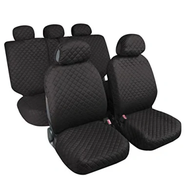 3 + 3 2 front, 2 back pockets (with zips), 5 copripoggiatesta; Sponge Padding in Polyester fabric Universal compatible for most standard seats; Seats Fitted with side airbags Non-fading colours; Soft padding; Headrest Cover Included Backrest and seat rear 50/50 divisible, 60/40, 40/60 (3 + 3 Hinges); Removable for greater adaptability to the central part seats close