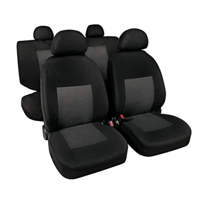2 front seats, 2 back seats (with 2 zips), 4 head rest covers; polyester fabric stuffed with sponge; universal for most vehicles with standard seats Universal for most standard seats; not compatible with seat fitted with side airbags Colours resistant to sunlight; soft stuffing; head rest covers included Joints without velcro; zips for arm rest