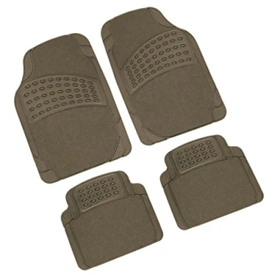 The functionality of the PVC matched to the elegance of the carpet Non-toxic plastic products, complies with current European standards Odourless and very resistant to wear and tear Not scolorano and are easy to wipe clean & # x202 F; non-slip back Universal size with pretagli, suitable for all cars