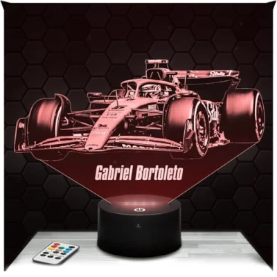 Lampephoto.fr 3D Lamp G. Bortoleto F1 Brazilian Racing Driver, Touch LED Night Light, Hologram Effect, Christmas Birthday Gift Idea for Men, Bedroom Decoration Object