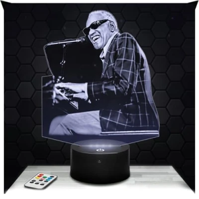 Lampephoto.fr 3D Lamp R. Charles Singer Pianist Musician, Touch LED Night Light, Hologram Effect, Christmas Birthday Gift Idea for Men Women, Bedroom Decoration Object