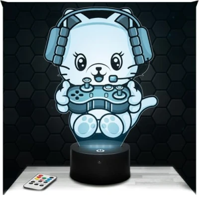 Lampephoto.fr Cat Gamer 3D Lamp Decoration for Boy's Room Gaming Video Games Gift Idea Soft Light Night Decor, Original Christmas, Teenagers