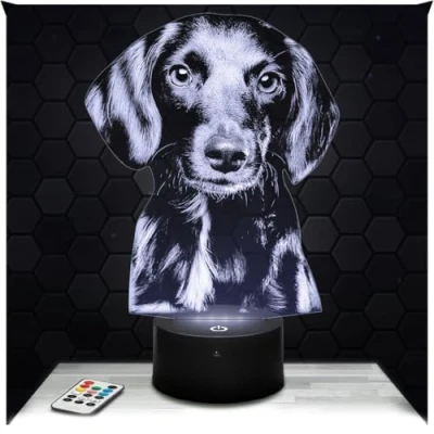 Lampephoto.fr Cute Black Puppy 3D Lamp, Night Light LED Illusion pet Decoration, Gift for Doglover, Children's Bedroom, Gifts Idea Boys, Original Christmas,