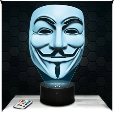 Lampephoto.fr Guy Fawkes Anonymous V for Vendetta 3D Lamp Night Light LED Illusion Lamp, Christmas, Gift idea Boys and Girls, Children's or Adult's Bedroom, Gifts Merch