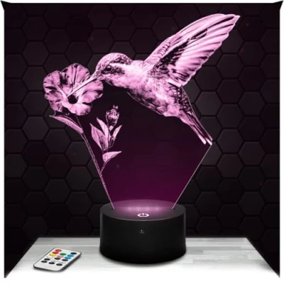 Lampephoto.fr Hummingbird 3D Lamp Animal Touch Night Light Led, Hologram Effect, Christmas Birthday Gift Idea for Boy or Girl, Room Decoration Object