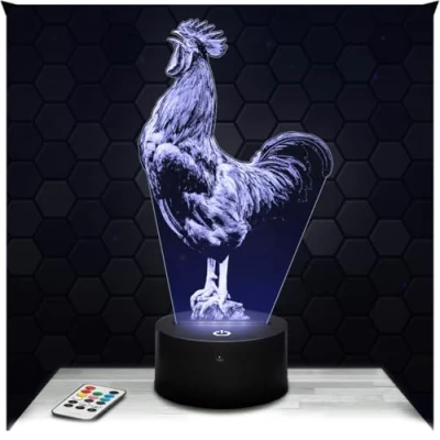 Lampephoto.fr Rooster 3D Lamp Animal Touch Night Light Led, Hologram Effect, Christmas Birthday Gift Idea for Boy or Girl, Room Decoration Object