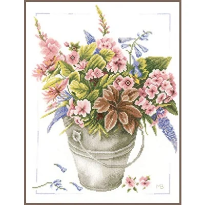 Lanarte Counted Cross Stitch Kit: Bouquet of Flowers in Bucket, NA, 30 x 38cm