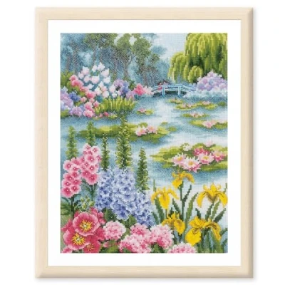 Lanarte Counted Cross Stitch Kits Wall Art Approx. 24 X 33 cm Flower Lake DIY Kit Crafts Adults Decoration Christmas Gift Complete
