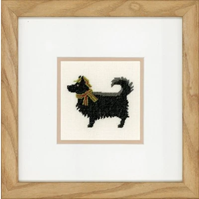 This counted cross stitch design from Lanarte features a black dog wearing a deerstalker hat and tartan scarf The kit contains 30 count ecru linen fabric 9 cm x 9 cm PN-0148263
