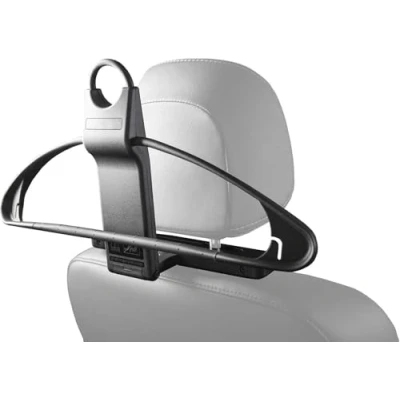 Comfortable, practical and flexible car hanger for business trips, sports and private For a tidy and clear vehicle interior. . Easy and quick installation on the front headrests. . With integrated hanger for the wardrobe at home or in the hotel Click system for quick Remove and attach and attach the