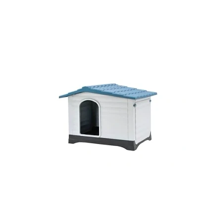 Durable Dog House ; Made with anti-shock robust plastic that is waterproof and UV rays resistant ; Dog house measures L36*W27*H26 inches Patented Fold-Out Porch ; Side panel opens into a porch providing additional living space and ventilation for your dog; Dog house can be assembled w/ the fold-out door on right or left side Suitable Ventilation ; Large entry-way, fold-out porch along with built-in ventilation and drainage system provides your dog with a healthy, ventilated and dry living space Easy Assembly Dog House ; Outdoor dog house does not require any tools for assembly and can be constructed or dismantled very easily Indoor and Outdoor Use: The weather resistant dog house is ideal for indoor, backyard, patio, deck, and other outdoor application; The smooth surface offers perfect breathability and heat balance features that harmonize to create a haven oasis for your furry friends