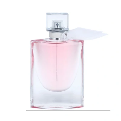 'La Vie Est Belle' l'eau de toilette florale offers a brand new vision of the exceptional bottle, designed by Catherine Krunas. Its crystal smile is seen in more profound, radiant form than ever, taking flight with delicate fragility. Its new, pared down lines are magnified with an iridescent white organza ribbon with sheer airy petals paying tribute to the floral fragrance, forming two ethereal wings on its joyful silhouette, like symbols of freedom. Fresh and luminous, its ros elixir adds to the elegance of this concentrate of happiness.