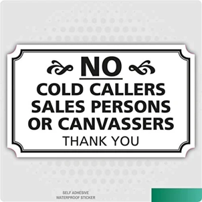 Landing Designs 2 x No Cold Callers Canvassers Salesman Front Door Sign Sticker Various Options (No 100mm 60mm)