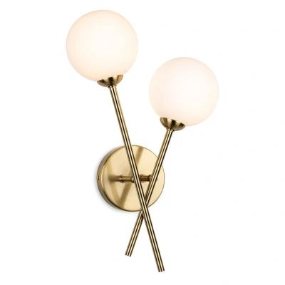 Lando Globe 2 Light Wall Brushed Brass with Opal White Glass 2xG9