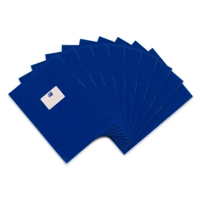 Strong features: sturdy protective cover, environmentally friendly, recyclable PP plastic material (polypropylene), capacity ideal for 16-32 sheets (max. 48 sheets) Ideal format: page dimensions 215 x 305 mm, dimensions open 430 x 305 mm, suitable for DIN A4 size notebooks, with practical binding (45 mm) Colour: 10 blue book covers with chequered textured embossing (raffia look) Format A4 – This A4 notebook cover is suitable for large school books in DIN A4 format Versatile – also serves for the correct colour assignment of school subjects, stable and tear-resistant, with glued name label