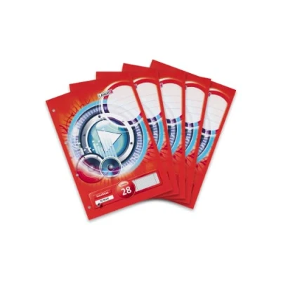 Pack of 5 squared school pads in DIN A4 format squared with margins right and left (line style 28), for notes or corrections on the margin. The 4-hole punched writing pads have 50 sheets (100 writable pages) with 70 g/m² fine, white, wood-free writing paper. Suitable for left- and right-handed users thanks to the head binding. With wipe-clean cover for a permanent flawless look. You will receive 5 squared notepads, each with a hard back cardboard.