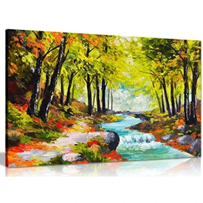 Landscape Oil Painting River In Autumn Forest Reproduction Canvas Wall Art Picture Print (18x12in)