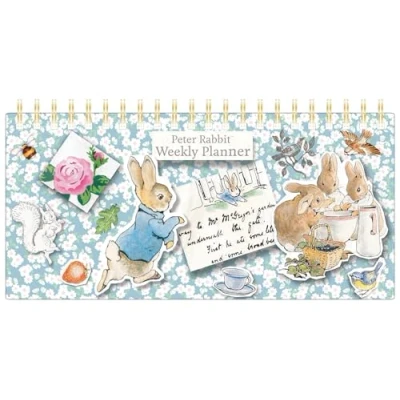 BEAUTIFUL DESIGN: Plan-ahead and write out your to-do lists with this charming landscape weekly planner featuring the beloved Peter Rabbit character artwork from the world of Beatrix Potter. STURDY DESIGN: This beautiful weekly planner has a handy flip-up cover design, and the wire binding allows it to stand up or lay flat. The landscape design makes it easy to see your weekly appointments and upcoming plans. PERFECT FOR PLANNING: Each page of this weekly planner provides space to write down notes, to-do lists and your daily reminders. MAKES A BEAUTIFUL GIFT: The charming artwork and premium design make this the perfect gift for fans of the iconic world of Beatrix Potter. OFFICIAL LICENSED GIFT: This gorgeous weekly planner is an official Beatrix Potter gift.
