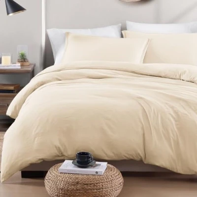 LANE LINEN 3 Piece Single Bedding Set Pre Washed Microfiber Duvet Cover, Fitted Sheet, and Pillowcase Cozy Durable (Ivory)