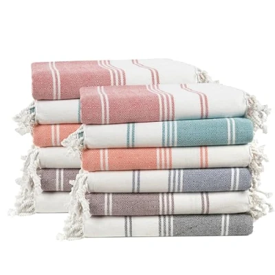 Sand-Free Bliss, Every Time: Say goodbye to sandy messes with our Lane Linen Cotton Rich Beach Towels 12 Pack. Crafted for the beachgoer’s dream, they shake clean in seconds—no more dragging half the beach home. A must-have for those sunny escapes, coastal holidays, or poolside lounging. Lightweight & Travel-Ready: Each oversized towel (39" x 71") folds compactly, perfect for travel, camping, or gym bags. Whether you’re off on a Mediterranean cruise or a weekend getaway, this lightweight beach towel doubles as a shawl or blanket without the bulk. Quick-Dry & Ultra-Absorbent: Made from a cotton rich blend (70% cotton, 30% polyester), these towels absorb quickly and dry even faster—ideal after a swim or shower. Pre-washed for extra softness, they’re the ideal mix of comfort and convenience for every adventure. Versatile for All Occasions: More than just a beach towel! Use it as a Turkish towel, bath sheet, yoga mat, sarong, or even a chic picnic blanket. Whether it’s for the pool, spa, or a spontaneous beach yoga session, these towels adapt to your lifestyle. Easy Care & Guaranteed Satisfaction: Machine washable and dryer-friendly for effortless upkeep. We're confident you'll love the quality and style—if not, our customer-first guarantee means we’ll make it right. Style, practicality, and peace of mind all in one towel.