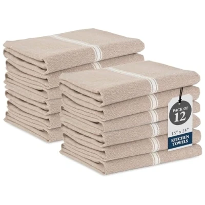 LANE LINEN Kitchen Towels Set 100% Pure Cotton Dish for Kitchen, Super Absorbent Hand Towel, Tea Towels, Soft & Durable Cloths, Pack of 12 14x25, Beige