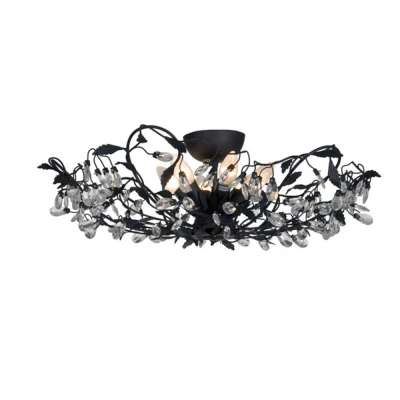 Langelo 6 Light Glass & Crystal Ceiling Black