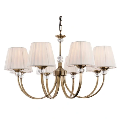 Langham 8 Light Multi Arm Chandelier Antique Brass, Pleated Cream Shades, E14