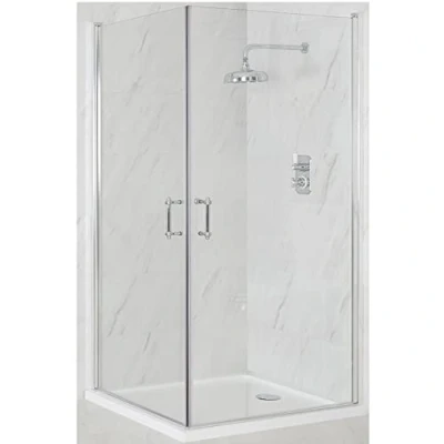 AmazonToughened glass and aluminium construction Includes 2x 760mm hinged shower doors and 760mm x 760mm white tray Hard-wearing polished aluminium finish Hinged doors allow easy entry to the enclosure Acrylic capped polymer resin tray with fast flow waste Height of 1950mm to catch more splashes, Weight: 0.551155655 pounds, Manufacturer: Milano