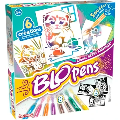 EASY AIRGRAPH EFFECT: Thanks to Blopens pens, children blow into the pens to make the colour appear like an airbrush. A simple and playful technique that encourages creativity, develops fine motor skills and allows you to achieve amazing gradients effortlessly. An ideal creative hobby from 5 years old. BABY ANIMALS WORKSHOP: The set includes 6 original stencils depicting cub, rabbit, red panda, seal and other adorable baby animals. The child can easily create successful illustrations, enrich his drawings and invent scenes full of tenderness. An irresistible theme for little artists. Reusable stencils & washable material: The sturdy stencils can be used again and again to multiply your creations. The caps and tips of the pens are washable, allowing for a clean and easy to maintain activity. Ideal for regular use at home, travel or school workshop. CREATIVE & EDUCATIVE ACTIVITY FOR CHILDREN AGE 5: Blopens stimulate concentration, hand-eye coordination and artistic confidence. This quiet, fun, non-digital hands-on activity effectively occupies children on Wednesdays, birthdays, weekends or holidays, while encouraging their self-expression. COMPLETE & READY TO USE: The set includes 8 Blopens, 6 reusable stencils and 6 drawing sheets (information from the data sheet page 1). Everything is ready to get started immediately: no need for additional equipment. A perfect creative gift for girls and boys from 5 years old., Manufacturer: Lansay