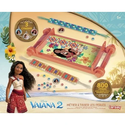 Children's bead weaving: Disney Moana 2 manual activity designed to create bead bracelets for children from 5 years, using a stable loom and instructions included to accompany the creation of bead bracelets at home BEAD BRACELETS KIT WITH ACCESSORIES: Creative box including 800 coloured beads, 4 coloured threads and 3 Moana charms, allowing the creation of Disney bead bracelets inspired by the Moana 2 universe for children UNIVERS DISNEY VAIANA 2: creative play beads for children incorporating a decorated craft Moana 2, allowing you to create Disney bead bracelets in connection with the Moana universe, with coloured beads and visual elements from the license Colourful beads and Disney charms: children's bead bracelet kit incorporating 800 multi-coloured beads and 3 Moana 2 charms, allowing you to vary shapes and colours to create personalised bead bracelets according to your desires Disney Vaiana 2 gift idea: Disney Moana 2 licensed children's bead bracelet kit, offered as a gift idea for children aged 5 and over, incorporating coloured beads, charms and loom for a craft activity around bead bracelets, Manufacturer: Lansay