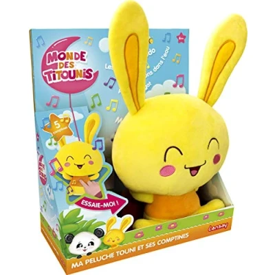 Titounis – Discover, learns and lets your imagination run wild by entering the world of Titounis Soft musical toy from Touni reproduces a melody when pressed on your stomach Cuddly rabbit – This soft toy will delight little ones who can sing this well-known nursery rhyme Children's toy for 8 years – This plush toy is suitable for children aged 6 months and above. Dimensions: 22 cm, Manufacturer: Lansay