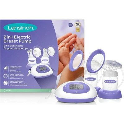Flexible Use: Use it as a single or double breast pump. Plug in when you are at home, or use it with batteries on the go, and use the bottle and teat to feed baby straight away, or seal with a disk to store in the fridge or freezer Hospital Grade Performance: Lansinoh Double Electric Breast Pump has 3 pumping styles and 8 suction levels for expressing mums. Includes 2 phases: ‘Let down’ to initiate and stimulate milk flow and ‘Expression’ to maximise milk flow Comfortable and Quiet: Super quiet for discreet pumping. Back-lit LCD display allows you to express comfortably at night or in low light conditions Hygienic Design: A special closed system prevents breast milk from entering tubing, optimising suction levels and making cleaning easy. Pump directly into Lansinoh's Breastmilk Storage Bags and Bottles for storing breast milk safely What's Included: The Lansinoh 2in1 Double Electric Breast Pump comes with everything you need, including the pump base unit, 4 Comfort Fit breast cushions, 4 valves, 2 feeding bottles, 1 NaturalWave slow flow teat, UK 3 pin plug and AC power adapter
