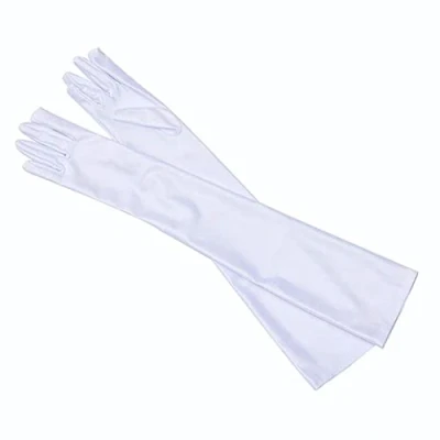 Evening Satin Gloves Made of high quality a bit stretchy satin fabric, durable,smooth and comfortable. Evening Satin Gloves are 52cm/20inches in length from fingertip to the end Evening gloves are easy to put on and take off, goes well with the fancy costume and can prevent your skin from getting hurt, keep your skin white. One size fits all with stretchy. Satin gloves suit for wedding party, engagement, costume party, prom, opera performance, great gatsby themed party, stage performance, flapper costume party, prom, dance, ball, evening party and more