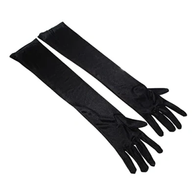 Evening Satin Gloves Made of high quality a bit stretchy satin fabric, durable,smooth and comfortable. Evening Satin Gloves are 52cm/20inches in length from fingertip to the end Evening gloves are easy to put on and take off, goes well with the fancy costume and can prevent your skin from getting hurt, keep your skin white. One size fits all with stretchy. Satin gloves suit for wedding party, engagement, costume party, prom, opera performance, great gatsby themed party, stage performance, flapper costume party, prom, dance, ball, evening party and more
