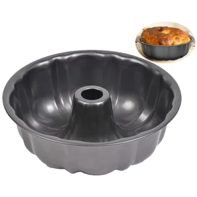 LANYOTA Ring Cake Tin Non Stick 26CM Fluted Pan, Carbon Steel, 12Cups, Round Tray, Baking Pan Moulding for Bread