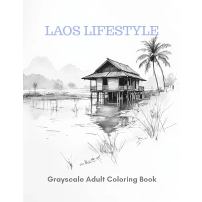 Laos Grayscale Adult Coloring Book