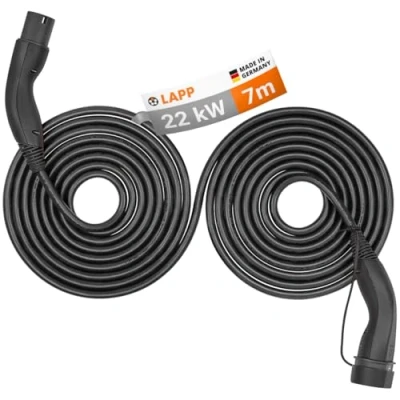 Lapp Mobility Helix type 2 charging cable 22 KW/Self retracting / 32 A 3 phase/E car cable/Mode 7m, black