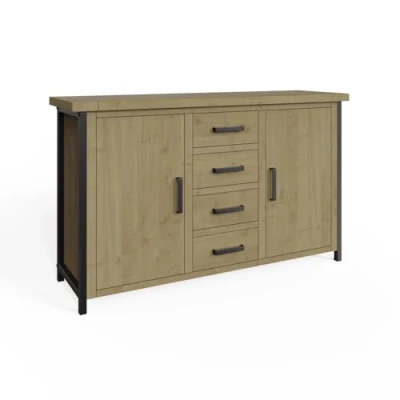 Large 150cm Sideboard Solid Pine Industrial Metal Design. Ready Assembled. Fwstyle