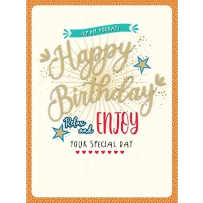 A High Quality Greeting Card and Envelope From Piccadilly Greetings Designed and made in the UK - supporting British jobs Caption: Birthday F Description: Relax &enjoy Approximate size: 12 x 9 inches / ~A4 Size