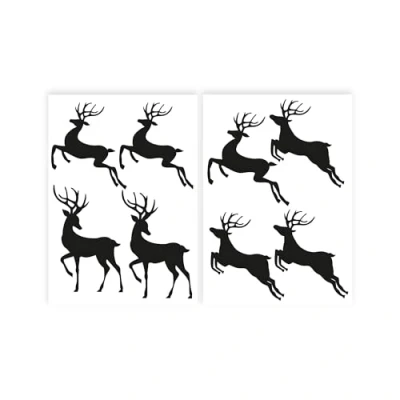 Multiple Sizes & Colors: Choose from 11 cm (small) or 17 cm (large) reindeer in silver, gold, black, forest green, or burgundy to suit any décor. Festive Reindeer Design: Add a stylish holiday touch with small and large reindeer silhouettes, perfect for Christmas walls, windows, furniture, and mirrors. High-Quality Vinyl: Made from premium, durable vinyl that sticks securely to smooth surfaces and removes easily without leaving residue. Easy Bubble-Free Application: Comes with clear instructions for smooth placement on walls, doors, ceilings, and other flat surfaces. Versatile Christmas Decoration: Ideal for home, office, classrooms, shop displays, or even gift packaging, creating a festive and cheerful atmosphere.