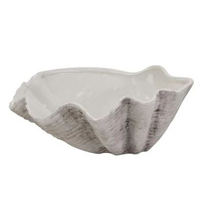 General description This is the Large Ceramic Adele Shell Bowl, designed and developed by Hill Interiors' very own Adele. This oversized clam shell is made of ceramic and is fully watertight, unlike others on the market that are typically made from resin and lack the same robustness. This piece is multi-textural and serves both functional and ornamental purposes. Technical specifications Material: Ceramic Dimensions: L40 x W40 x H16 cm Weight: 3.1 kg Color: White Usage Display it as is, as it is a beautiful piece. Fill with faux florals. Plant with seasonal indoor bulbs, e.g., hyacinths, paperwhites. Lie champagne across it on a bed of ice. Fill with small hand towels or face cloths in the bathroom. Explore other creative uses!