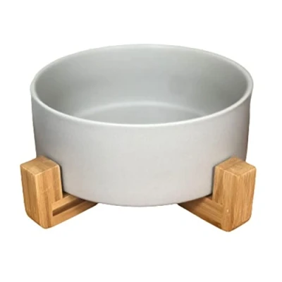Large Ceramic Dog Bowl on Bamboo Stand