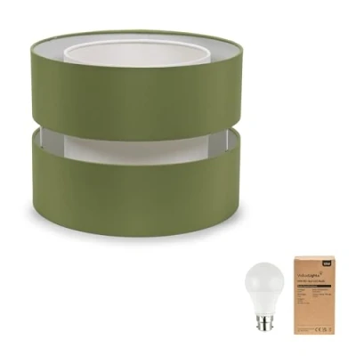 Large Easy Fit Ceiling Light Shade 2 Tier Pendant Drum Lampshade for Living Room Bedroom Hallway Olive Green LED Bulb Included