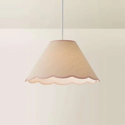 Large Easy Fit Natural Linen Tapered Light Shade with Pink Scallop Trim for Ceiling Floor Table Lamp