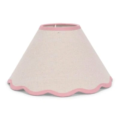 Large Easy Fit Natural Linen Tapered Light Shade with Pink Scallop Trim for Ceiling Floor Table Lamp LED Bulb Included