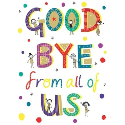 A High Quality Greeting Card and Envelope From Piccadilly Greetings Designed and made in the UK - supporting British jobs Caption: Goodbye From All Of Us Description: Stick people Approximate size: 12 x 9 inches / ~A4 Size