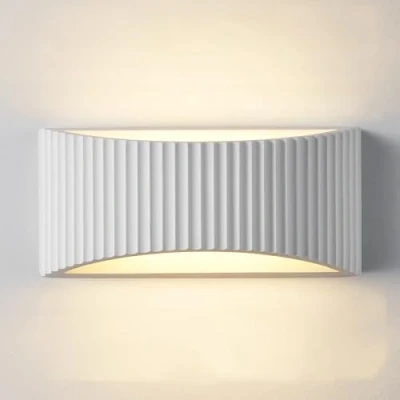 Large Indoor Modern Wall Light, Up and Down Ceramic Art Deco with Wave Pattern White Shade, G9 Bulb Cap (Bulb NOT Included), Ideal for Living Room, Kitchen, Bedroom, Hallway, Hotel, B&B