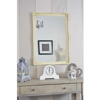 LARGE IVORY Shabby Chic Antique Style Rectangular Wall MIRROR complete with Premium Quality Pilkington's Glass Size: 24 inches x 34 (60cm 85cm)