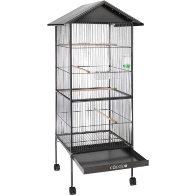 Functional: this bird aviary from Cadoca impresses with its modern design and functionality. With its accessories and space, it offers your bird species-appropriate comfort and plenty of space to move. Easy to clean – cleaning the bird cage is easy to do thanks to the removable lower metal drawer. The built-in floor protection grille serves as protection so that your birds cannot fly away during cleaning. Flexibility – the high-quality bird cage can be easily moved around the home thanks to the 4 lockable safety double wheels. The large doors of the aviary also facilitate access and care. Features: the bird farmer has many extras. This includes 4 wooden perches that can be individually attached to the cage, a large divided feeder with perch and a water dispenser. Robust and durable – with its generous dimensions of 130 x 52 x 52 cm, the aviary offers plenty of space for your feathered pets. The robust 2 mm thick steel wire frame is powder coated and therefore rust and ageing resistant.