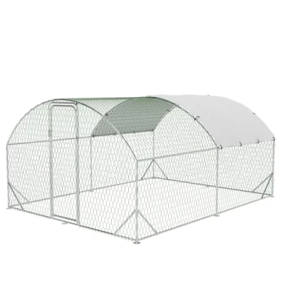 Large Metal Chicken Coop Walk In Poultry Cage Tri Support Wire Mesh, Waterproof UV Resistant Cover, Secure Outdoor Run Pen for Ducks, Rabbits, Yard & Farm, 9.8' W x 13.1' L 6.6'H